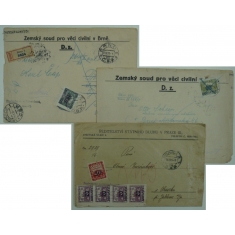 3x zpáteční lístek okresního soudu, 1x obálka se známkou znehodnocenou příležitostným razítkem; hezké