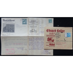 3x obchodní zásilka s přítiskem firmy a obrázkovou reklamou, VIGOR Opava, SMÉKAL Litovel, E. KELLER Znojmo