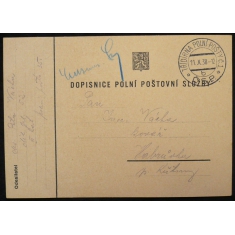 dopisnice polní pošty s razítkem 11.X.38; pochází z rozsáhlé sbírky