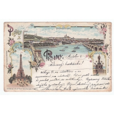 1900 Praha Malá strana Hradčany Karlův most věž litografie dopisnice dlouhá adresa