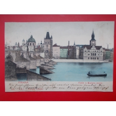 1900 Praha Prag Karlův most pramice na Vltavě