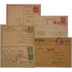 sestava 3 korespondenčních lístků, z Prahy do Petropavlovska (Kazachstán), z Taškentu (Uzbekistán) na Moravu a z Paříže; úřední razítka, cenzury; obvyklá kvalita