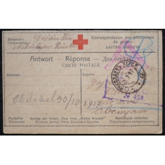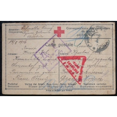 odpovědní lístek ČK zaslaný jako zajatecká pošta z Čech do města Krivoj Rog, ruská a rakouská cenzura, zachovalé