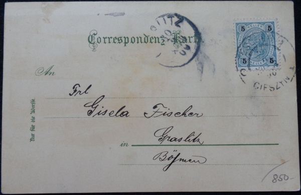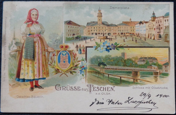 litografická koláž, dívka v kroji, prošlá, dlouhá adresa, Q2