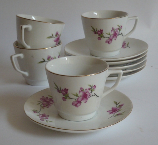 CHINA, souprava 4 hrníčků s podšálky