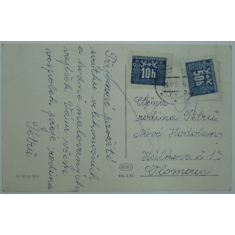 nevyplaceně zaslaná pohlednice v místě, doplatné 60h, razítko OLOMOUC 20.IV.54