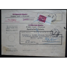 zpáteční lístek se známkou POFIS D73, 2,40 červená, razítko OLOMOUC, zajímavé, hezké