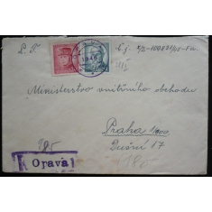 R dopis do Prahy se známkami emise Osobnosti, privizorní razítko OPAVA 1946 a provizorní R razítko; lehké skvrny