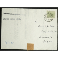 celistvost, POFIS DL82, 50h zelená, DR KROMĚŘÍŽ 16.IX.85, výpotřební funkce doplatní známky po platnosti