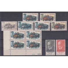 Nepoužité známky, Razítkované známky, Známkové sešitky, Výsadní a příležitostné tisky, Návrhy známek, Celiny, Celistvosti, Sbírky, sestavy, partie