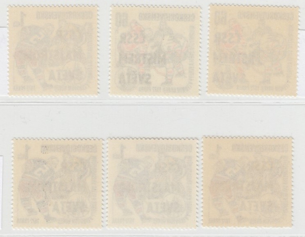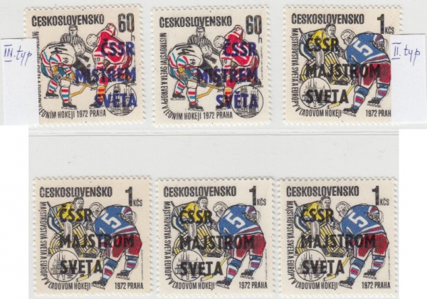 60h 2 kusy, 1x III. typ a 1x s deskovou vadou DV 29; 1Kčs 4 kusy, 1x II. typ a 3x bez rozlišovacích znaků; bezvadné, svěží, katalog 450Kš