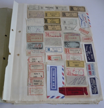 R nálepky, výstřižky s razítky, nalepeno na 60 stránkách