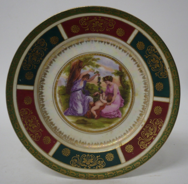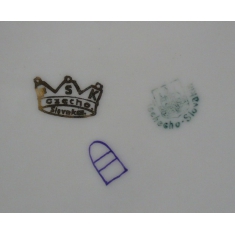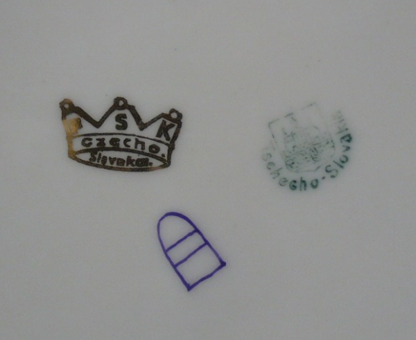 Dekorativní talíř, značka Czecho-Slovakia, koruna s písmeny FSK, Nová Role, Karlovy Vary