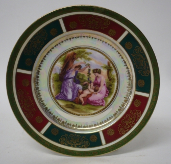 Dekorativní talíř, značka Czecho-Slovakia, koruna s písmeny FSK, Nová Role, Karlovy Vary