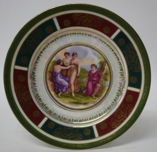 Dekorativní talíř, značka Czecho-Slovakia, koruna s písmeny FSK, Nová Role, Karlovy Vary