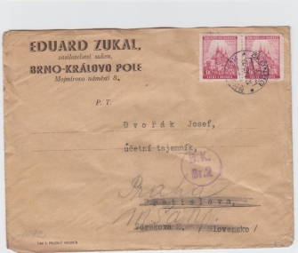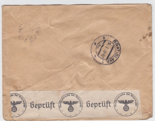 dopis do Bratislavy, BRNO 13.I.40, německá cenzura, přeposláno do Prahy