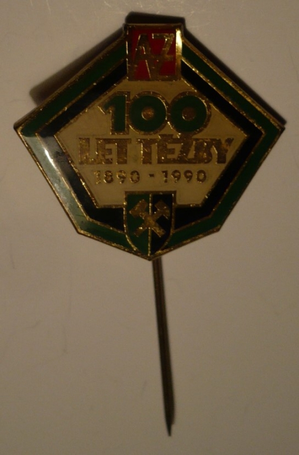 pamětní odznak 100 let těžby 1890-1990 / bronz, barva, plast 25x23mm