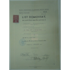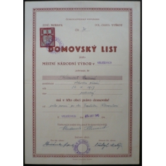 Dokumenty, Autogramy, Antikvariát › Historické dokumenty, archiválie › Legitimace, certifikáty › Rodinné události › Domovské listy