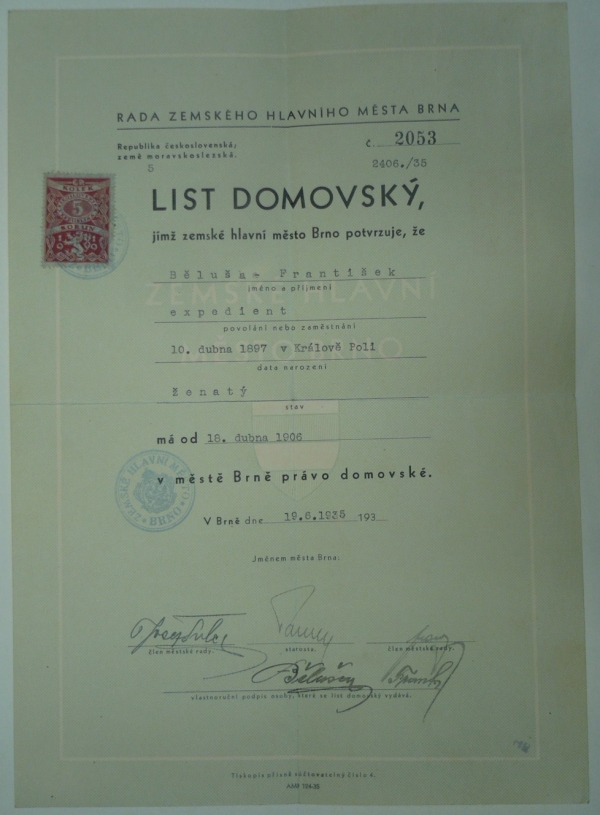 1935 Domovský list, Brno