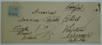 via Terst, Wien a Hulín, zbytek úřední nálepky, krásná pečeť s arabskými znaky, vzadu razítka KREMSIER a KOJETEIN; velmi vzácné