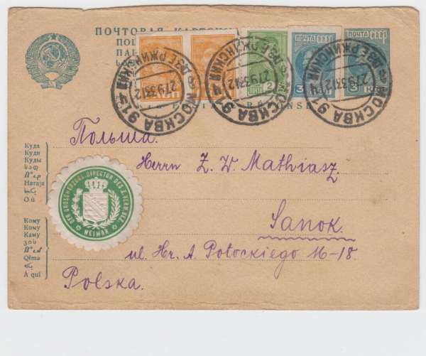 MOSKVA 27.9.33, zasláno do Sanoku (Polsko)