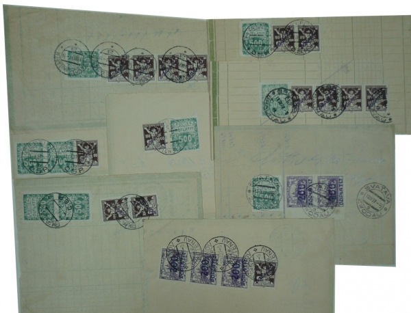 části doručovek poštovních poukázek se smíšenými frankaturami doplatních známek; hledané
