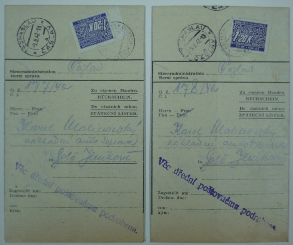1942 Doplatní, sestava 2 zpátečních lístků
