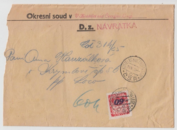 1925 Doplatní, soudní návratka