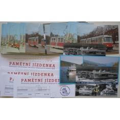 56 kartiček pohlednicového formátu (některé stejné), 7 pohlednic a 8 pamětních jízdenek 60 let lodní dopravy