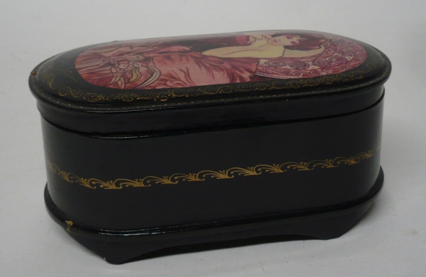 Dóza Alfons Mucha, lakované dřevo