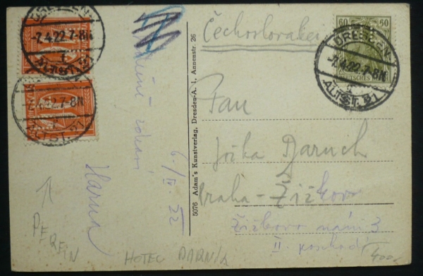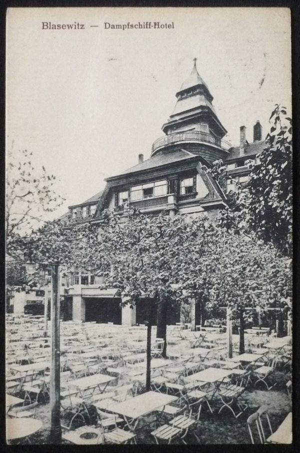Dampfschiff-Hotel, letní zahrádka, prošlá, perfin HE, Q2