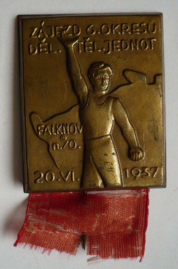 odznak - zájezd 6. okresu DTJ 20.6.1937 / bronz 30x38mm, orig. stužka