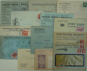 Čechy, sestava 13 firemních celistvostí s přítisky