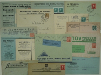 Čechy, sestava 13 firemních celistvostí s přítisky