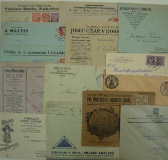 Čechy, sestava 13 firemních celistvostí s přítisky