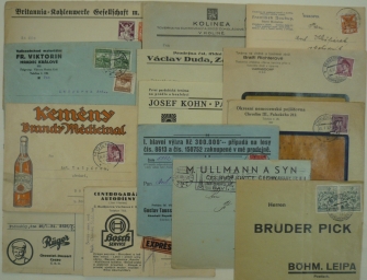 Čechy, sestava 13 firemních celistvostí s přítisky