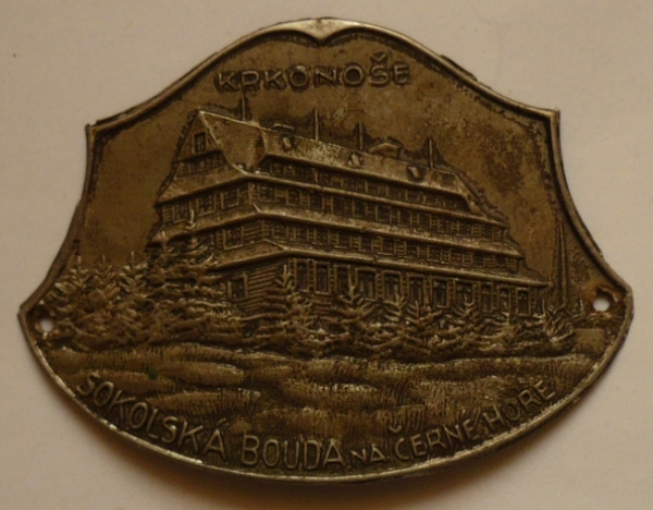 štítek na hůl - Krkonoše Sokolská bouda na Černé Hoře / alpaka 38x30mm