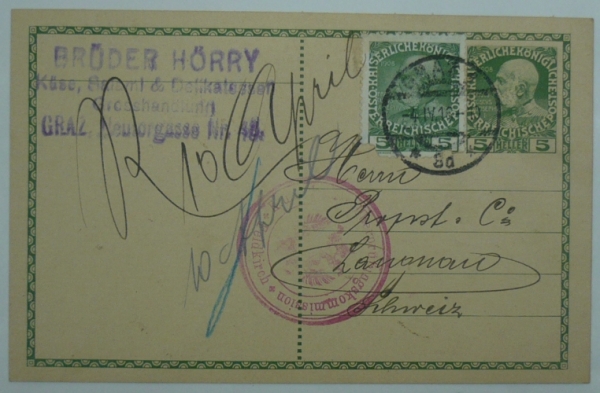 K.u.K. Militär-Überprüfungskommission, přifrankovaná dopisnice, podací razítko GRAZ 4.IV.16; hezké