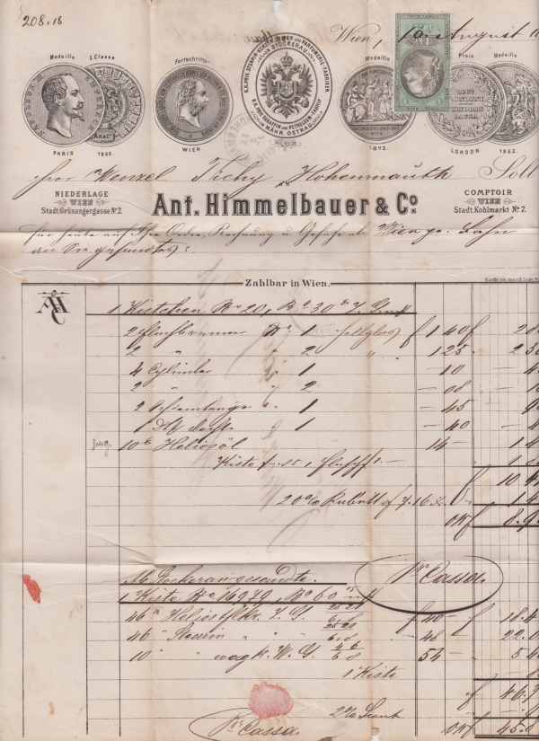 1875 Účet se záhlavím a kolkem