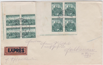 1938 Ex dopis se čtyřbloky Košice a Plzeň