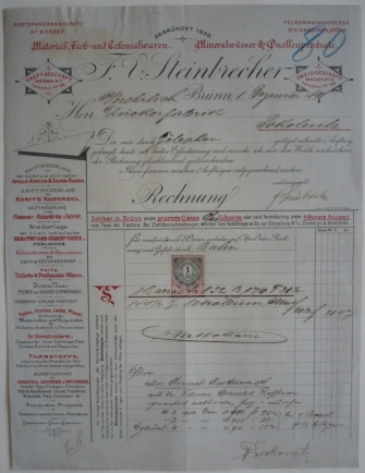 obchod koloniálním zbožím; kolkovaná faktura, velmi dekorativní