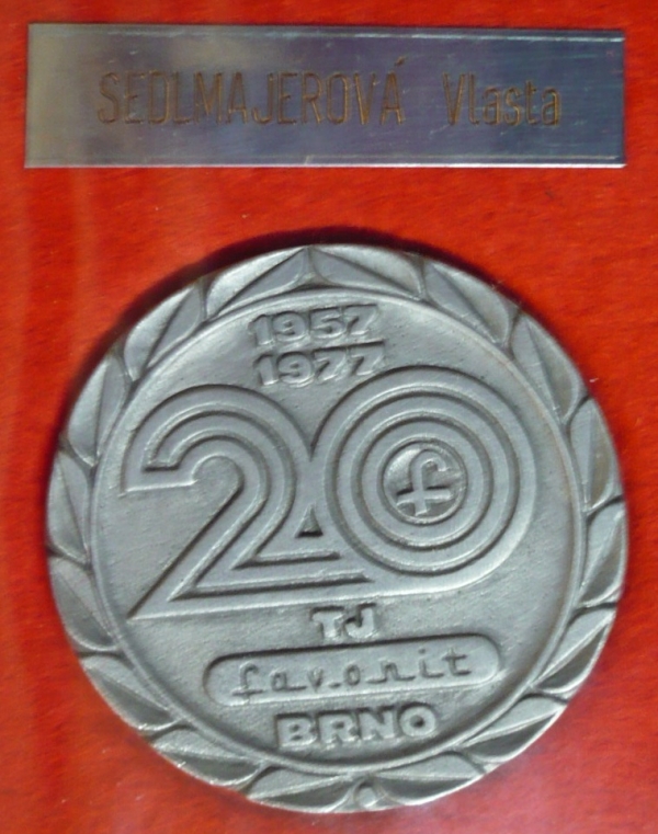 průměr 6cm, ve zvláštních deskách, dedikace Vlasta Sedlmajerová