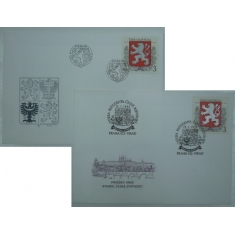 sestava 2 obálek se známkou Malý státní znak, 1x obálka FDC, 1x POB2B, Volba prezidenta České republiky, příležitostná obálka České pošty s fialovým přítiskem vlevo, se známkou POFIS 1 a 2x příležitostným razítkem PRAHA 012 - HRAD/ VOLBA PREZIDENTA ČR/ 26.1.1993, pěkný stav