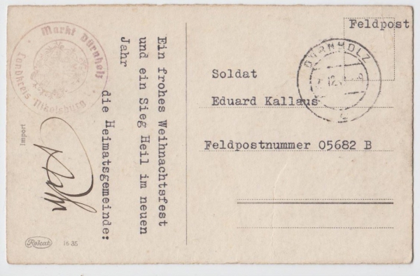 Feldpost 05682B, razítko DRNHOLEC [Dürnholz]