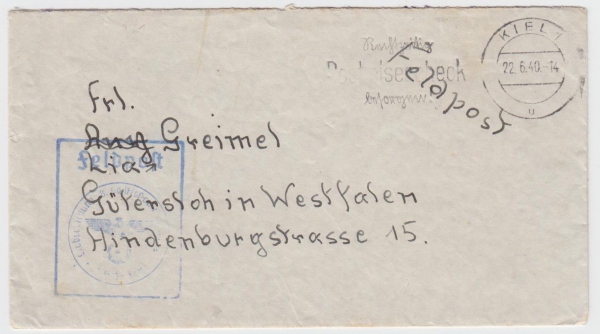 dopis námořníka přes polní poštu, KIEL 22.6.40; hezké