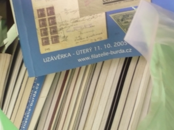 Filatelie - igelitová taška plná starých aukčních katalogů