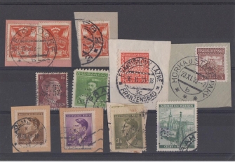 NAŠINEC, razítko PORTO, svitková známka, Holubice s deskovým číslem, Znak s deskovým číslem, čtyřpáska s provizorním razítkem, vlaková pošta č.991, TERESVA-KOŠICE, 2x příležitostné razítko