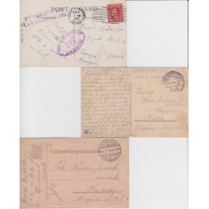 sestava 3 korespondenčních lístků, z Prahy do Petropavlovska (Kazachstán), z Taškentu (Uzbekistán) na Moravu a z Paříže; úřední razítka, cenzury; obvyklá kvalita