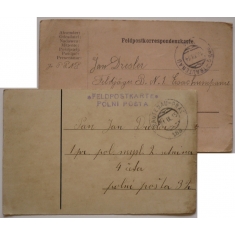 sestava 2 lístků polní pošty s podacími razítky vlakové pošty č. 188; patina