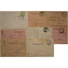 sestava 2 pohlednic s rámečkovými razítky "Von der Armee im Felde", razítka cenzury; hezké